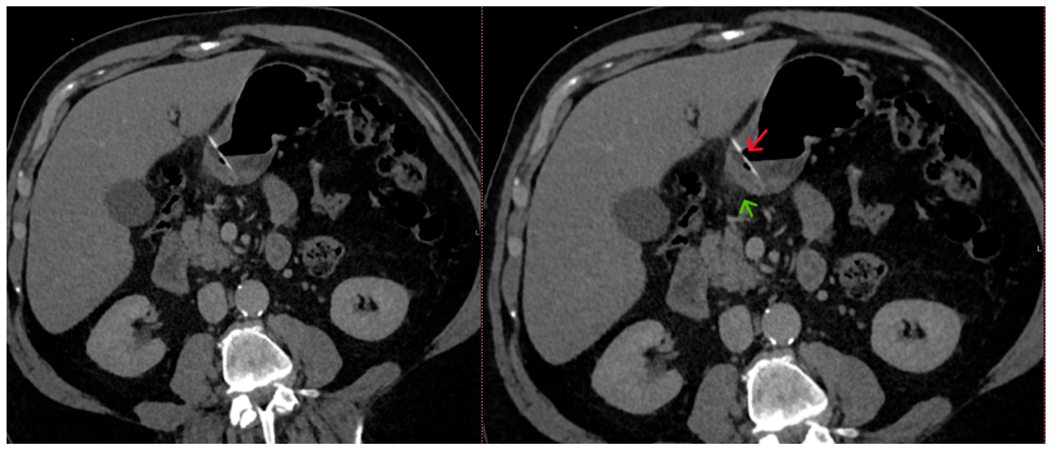 12. Arcia, A.; Muñoz, G.A.; Jimenez, G.E.; Albuja, M.G.; Yumbla, T.S.; Venegas, O.H.; Velasco, A.G.; Parrales, D.; Molina, G.A. Fishbone Perforation of the Stomach into the Lesser Sac and Pancreas with Abscess, a Fishy Business. J. Surg. Case Rep. 2024, 2024, rjae787. [Google Scholar] [CrossRef]