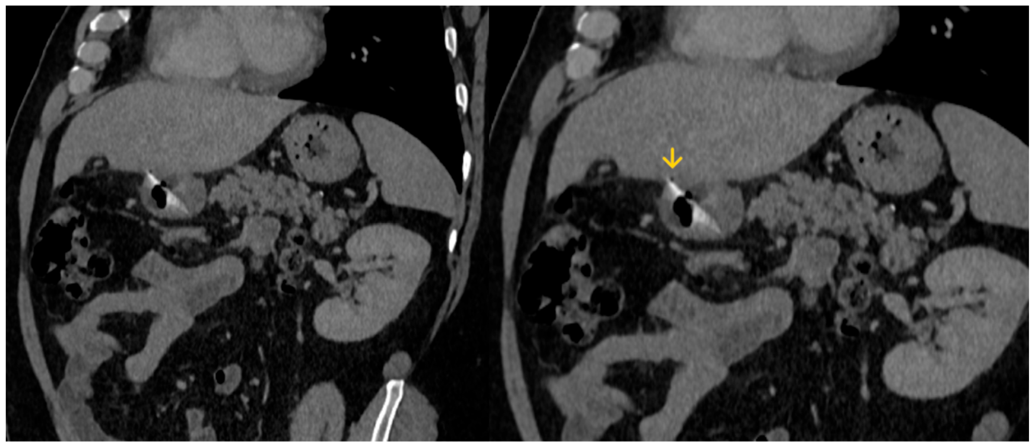 17. Okumura, M.; Koga, H.; Eguchi, H.; Sato, N.; Utsunomiya, R.; Wakahara, Y.; Morimoto, K.; Sugiyama, K. Ascending Colon Perforation by a Migrated Pancreatic Spontaneous Dislodgment Stent: A Case Report. Clin. J. Gastroenterol. 2025, 18, 383–388. [Google Scholar] [CrossRef]
