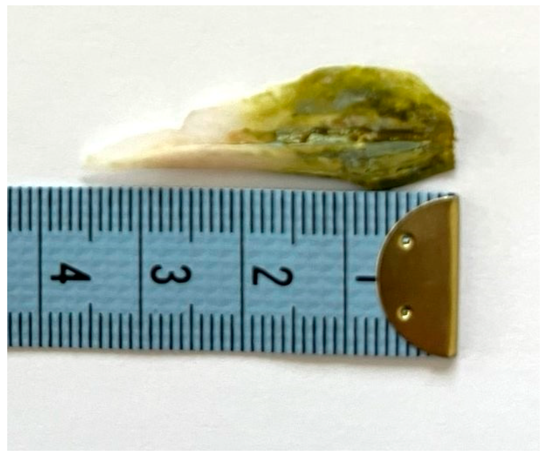 Figure 5. The length of the removed foreign body was about 3,9 cm (together with the small broken piece of it shown in Figure 4).