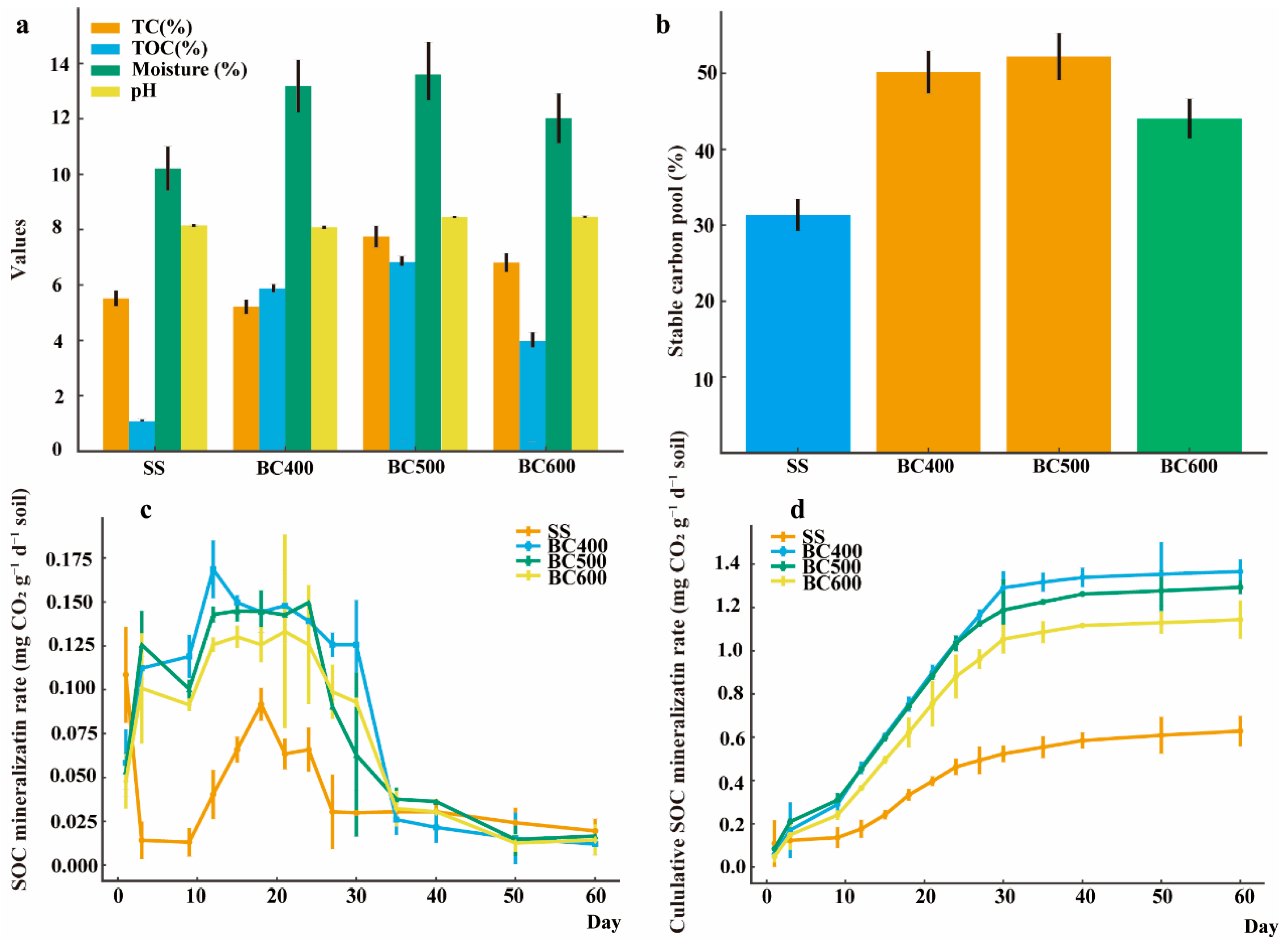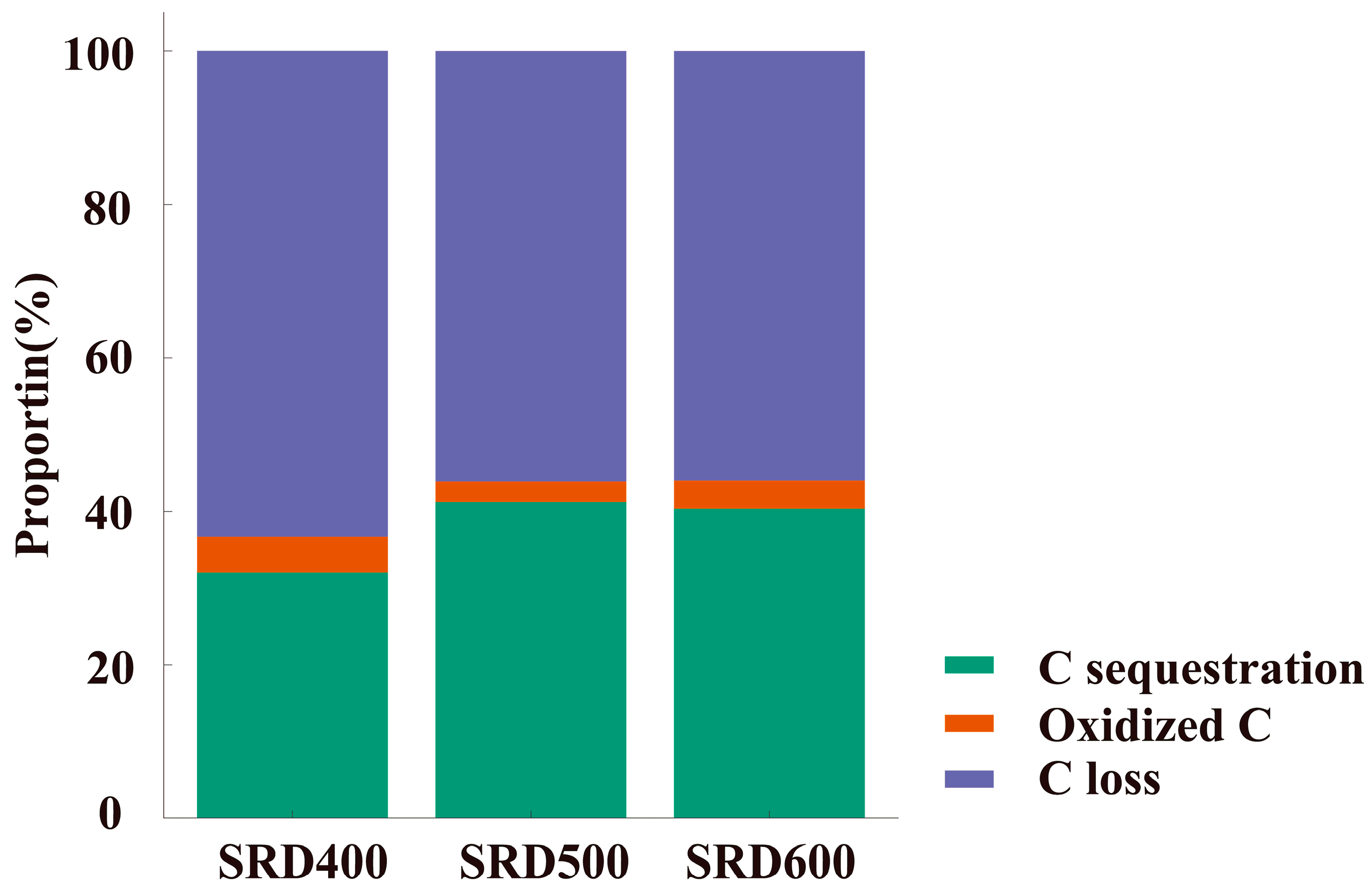 3.1.5. Biochar-Derived Carbon Pool Distribution