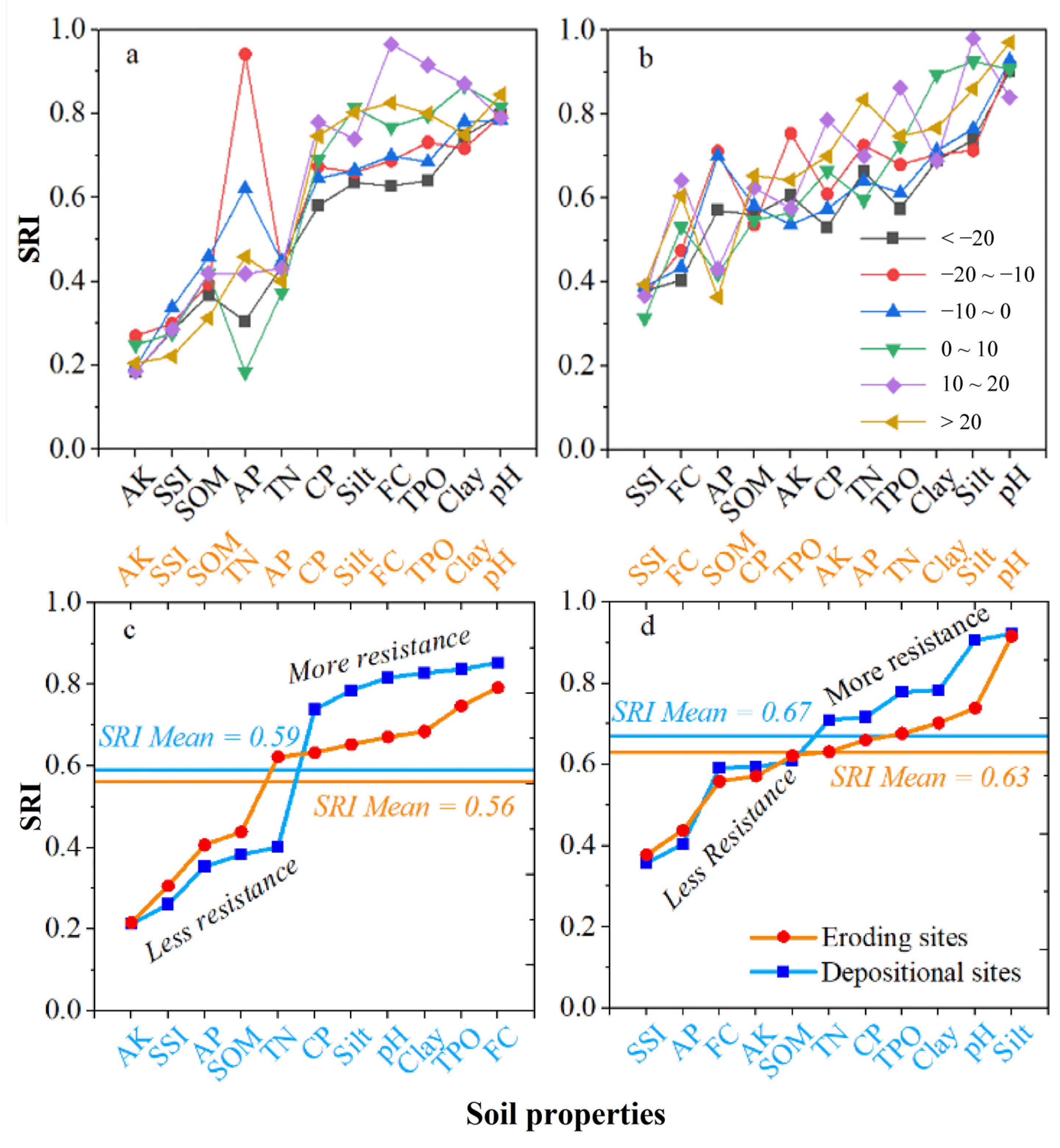 3.2. SDI and SRI as Influenced by Soil Properties Under Erosion and Deposition