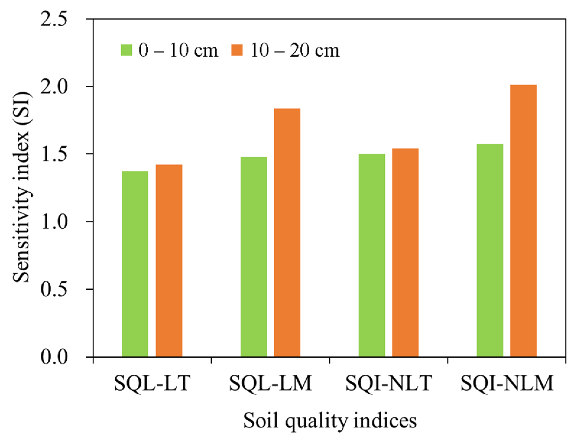 | SQI-NLT | 0.73 ± 0.01 a | 0.46 ± 0.03 c | 0.51 ± 0.06 bc | 0.48 ± 0.05 bc | 0.51 ± 0.01 bc | 0.54 ± 0.03 b | 0.50 ± 0.01 bc |