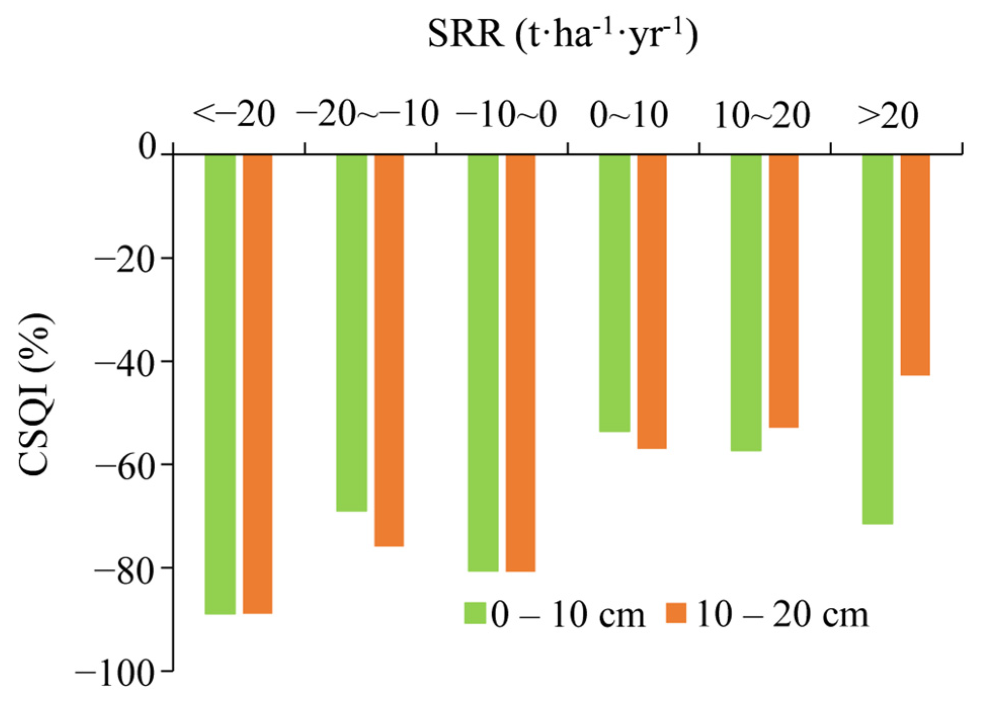| <−20 t·ha−1·yr−1 | −20~−10 t·ha−1·yr−1 | −10~0 t·ha−1·yr−1 | 0~10 t·ha−1·yr−1 | 10~20 t·ha−1·yr−1 | >20 t·ha−1·yr−1 | |||