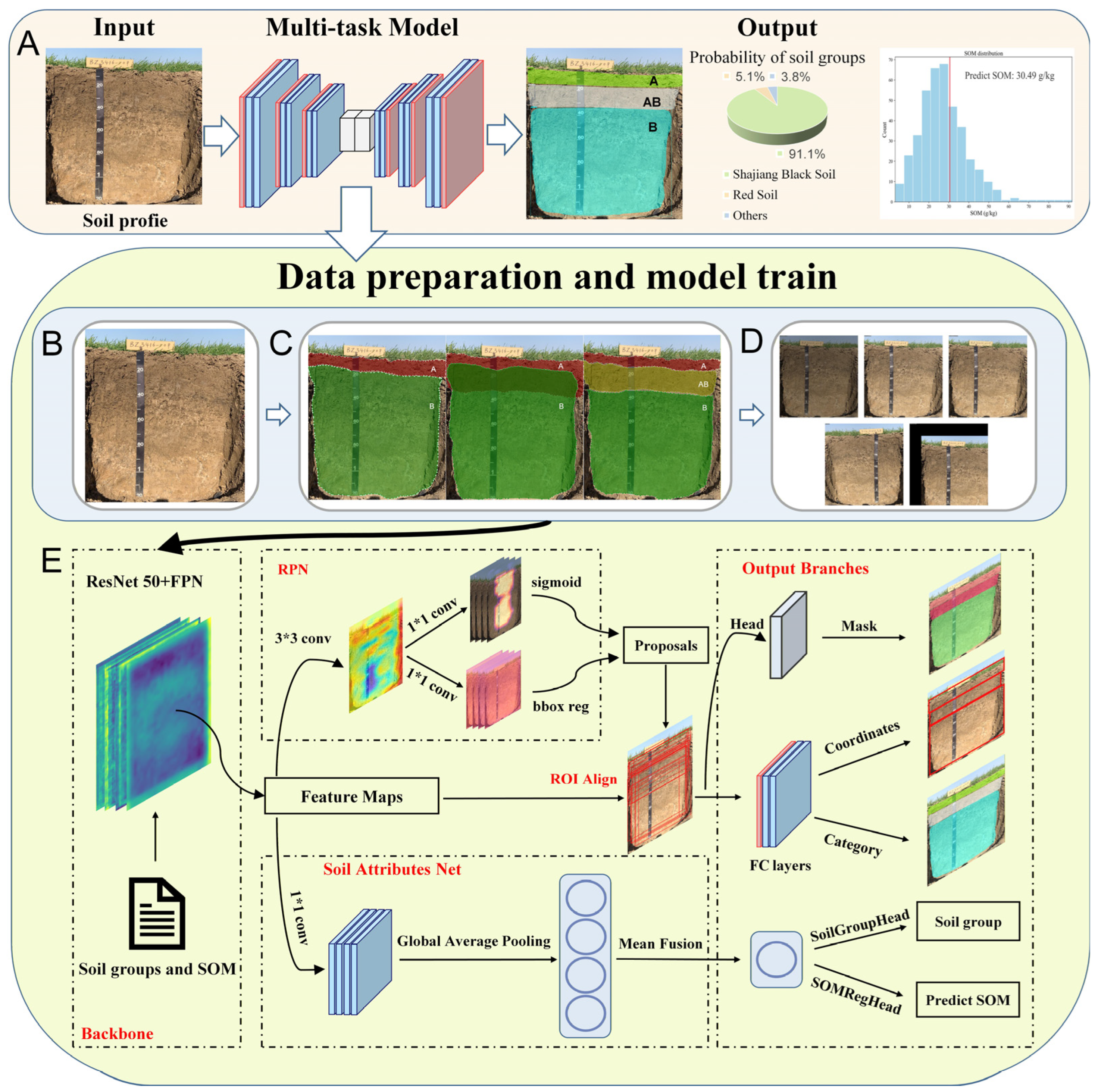 Chicago/Turabian StyleLiu, Qi, Guodong Fang, Naichi Zhang, Chenhao Pei, Song Wu, Min Yang, Jie Shen, Kai Yu, Xuezheng Shi, Weixia Sun, and et al. 2026. "Improved Mask R-CNN Multimodal Framework for Simultaneous Soil Horizon Delineation, Soil Group Identification and SOM Prediction from Soil Profile Images" Soil Systems 10, no. 3: 39. https://doi.org/10.3390/soilsystems10030039