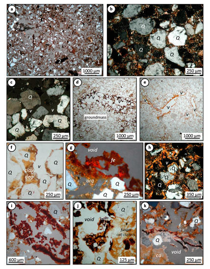 - Stoops, G. Guidelines for Analysis and Description of Soil and Regolith Thin Sections; SSSA Inc.: Madison, WI, USA, 2003; ISBN 0-8911-842-8. [Google Scholar]