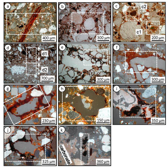 - Kühn, P.; Aguilar, J.; Miedema, R. Textural pedofeatures and related horizons. In Interpretation of Micromorphological Features of Soils and Regoliths; Stoops, G., Marcelino, V., Mees, F., Eds.; Elsevier: Amsterdam, The Netherlands, 2010; pp. 217–250. ISBN 978-0-444-53156-8. [Google Scholar]