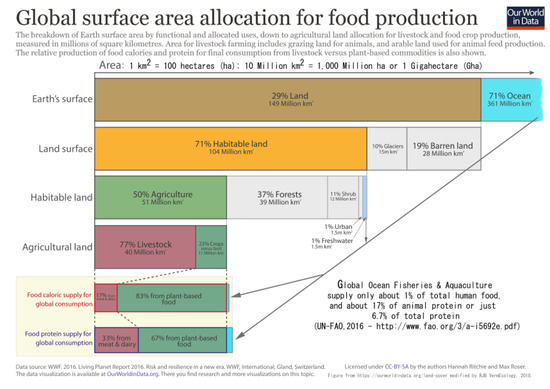 - Richie, H.; Roser, M. Land Cover for Food Production. 2018. Available online: https://ourworldindata.org/land-cover (accessed on 1 September 2018).