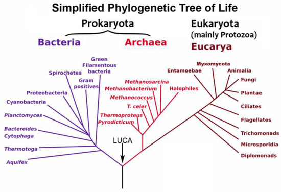 - Woese, C.R.; Kandler, O.; Wheelis, M.L. Towards a natural system of organisms: Proposal for the domains Archaea, Bacteria, and Eucarya. Proc. Natl. Acad. Sci. USA 1990, 87, 4576–4579. [Google Scholar] [CrossRef] [PubMed]