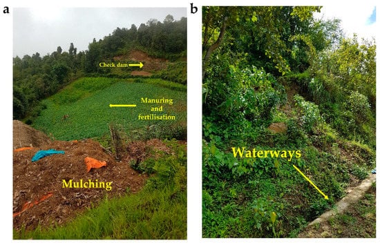 The rate with which the land and soil degrade depends on the rate of land cover degradation which is aggravated by land-use management and adverse climates. Vegetation cover, type and distribution of land-use, and its management are the major factors controlling the frequency of occurrence of soil erosion [27]. In a research conducted in the Landruk village of Nepal, the loss of nitrate-nitrogen was estimated to be 0.7–5.6 kg ha−1 year−1 in the surface runoff in the rainfed bench terraced cropping system [28].