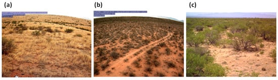 Webcam images depicting the vegetation type of the grassland (a), shrubland (b), and mesquite savanna (c) sites.