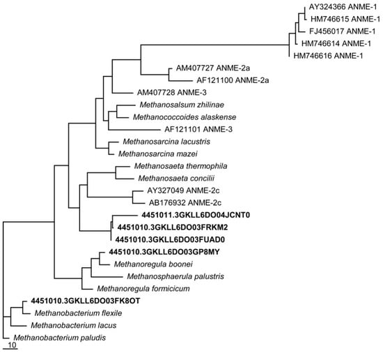 Utqiaġvik soil isolates related to methanogens capable of Fe(III)-reduction were detected [63], namely the Methanosarcina, Methanobacterium palustre, and Methanococcus clades (Figure 2), grouping closely amongst ANME groups 2 and 3, with greater separation from the ANME group 1.
