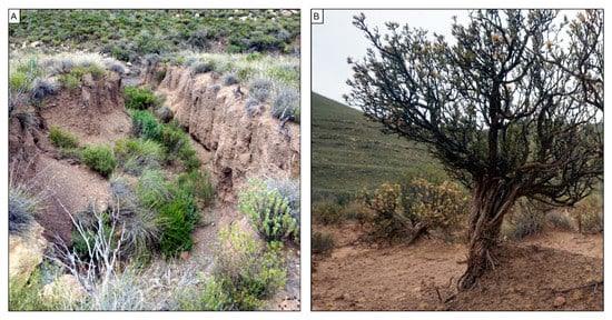 - Dickie, J.A.; Parsons, A.J. Eco-geomorphological processes within grasslands, shrublands and badlans in the semi-arid Karro, South Africa. Land Degrad. Dev. 2012, 23, 534–547. [Google Scholar] [CrossRef]