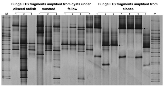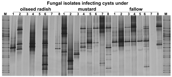 2.3.3. DGGE Fingerprinting of Bacterial and Fungal Communities Infecting the Cysts