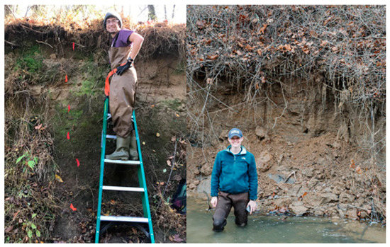 - Walter, R.; Merritts, D.; Rahnis, M. Estimating volume, nutrient content, and rates of stream bank erosion of legacy sediment in the Piedmont and Valley and Ridge Physiographic provinces of southeastern and central PA. In Report to the Pennsylvania Department of Environmental Protection, Lancaster, Pennsylvania; Franklin and Marshall: Lancaster, PA, USA, 2007. [Google Scholar]