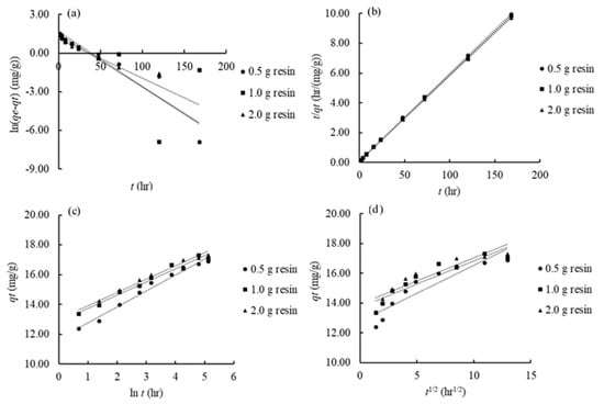 To understand how the mass of the hybrid resin affects the kinetic rate, the experiments were repeated using 0.5, 1, and 2 g of the hybrid resin in a mesh bag under the same experimental condition. The soil used in this test is S_18.