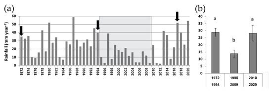 - Stavi, I.; Shem-Tov, R.; Shlomi, Y.; Bel, G.; Yizhaq, H. Recruitment and decay rate of Acacia seedlings in the hyper-arid Arava Valley, Israel. Catena 2015, 131, 14–21. [Google Scholar] [CrossRef]