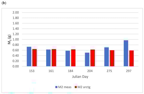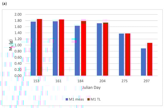 Figure 8 reported the dynamics of the measured and simulated leaf litter biomass losses. The student t-test (t = −0.127, p = 0.901) demonstrated that this model could predict the leaf litter biomass losses over time. Furthermore, Figure 8, noting particularly the biomass losses represented by both constituents M1 and M2, highlighted that the greatest variation between the observed data and the simulated ones occurred during the period of maximum drought of the year.