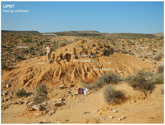 - Low, M.A.; Mackay, A.; Phillips, N. Understanding Early Later Stone Age technology at a landscape-scale: Evidence from the open-air locality Uitspankraal 7 (UPK7) in the Western Cape, South Africa. Azania Archaeol. Res. Afr. 2017, 52, 373–406. [Google Scholar] [CrossRef]