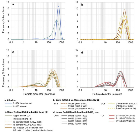 | Vol. Weighted Mean Particle Size Sample Range (μm) a | Particle Size Class a | Sorting (Std Dev phi Φ) b | Rounding | Consistence (Dry) | Texture Class a | ||