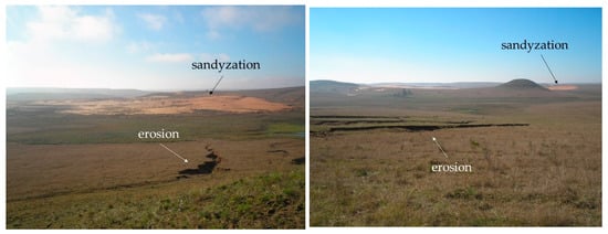 Figure 4 shows water and wind erosion and the extensive areas of bare and exposed Quartzipsamments to sandyzation.
