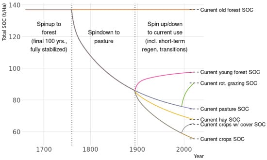 Chicago/Turabian StyleWiltshire, Serge, Sarah Grobe, and Brian Beckage. 2023. "A Historically Driven Spinup Procedure for Soil Carbon Modeling" Soil Systems 7, no. 2: 35. https://doi.org/10.3390/soilsystems7020035