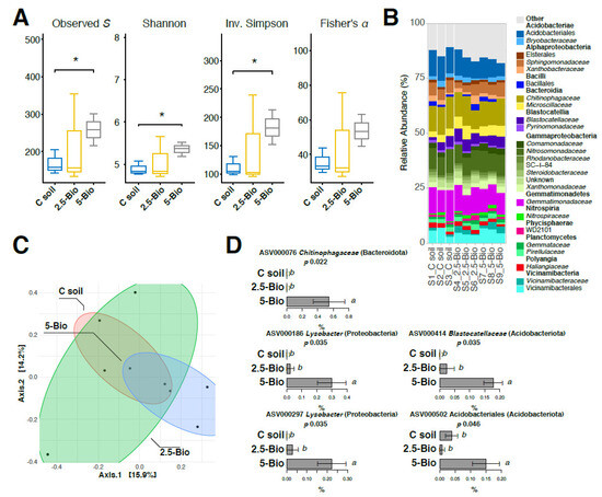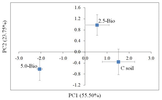 | Physico-Chemical Characteristics | C Soil | 2.5-Bio | 5.0-Bio |