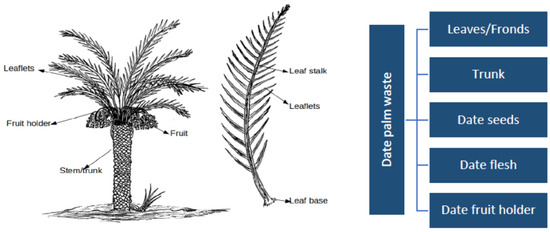 A date palm tree with its different components (Tahir et al., 2020 [74]).