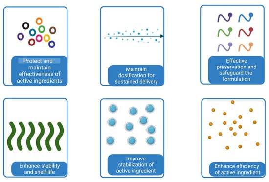 Nanoclay, known for its cost effectiveness and ready availability, can enhance the flexural modulus and reduce the coefficient of linear thermal expansion in the polymer matrix when added in a small proportion (1–5 wt%) [62,63]. Due to its high aspect ratio, nanoclay forms a complex pathway that impedes the flow of gases and vapors, thereby enhancing barrier properties against gasoline, nitrogen, oxygen, water vapor, and carbon dioxide. The benefits of polymer–clay nanocomposites have been thoroughly outlined by Alamri and Low [69]. They emphasized their superior physical properties such as shrinkage, optics, dielectric properties, and permeability. They also underscored their mechanical characteristics including toughness, strength, and modulus. Additionally, they noted their thermal attributes like decomposition, thermal expansion coefficient, thermal stability, and flammability [69]. Figure 3 focuses on utilizing the nanoclay-based pickering emulsions to develop stable, functional, and eco-friendly formulations for applications in the agri-food sector, cosmetics, pharmaceuticals, and various other industries [70].