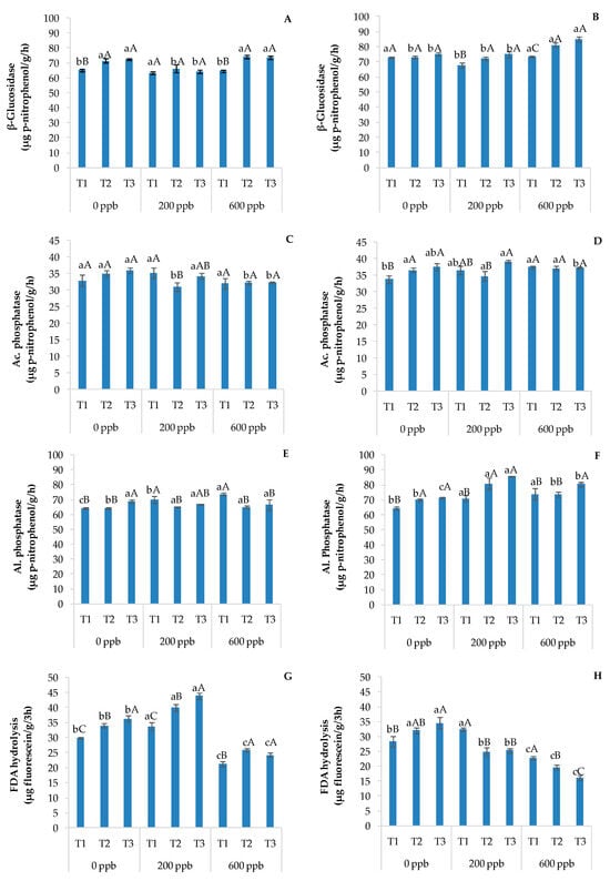 | Concentration | Time | Soil | β-Glucosidase | Alkaline Phosphatase | Acid Phosphatase | FDA Hydrolysis |