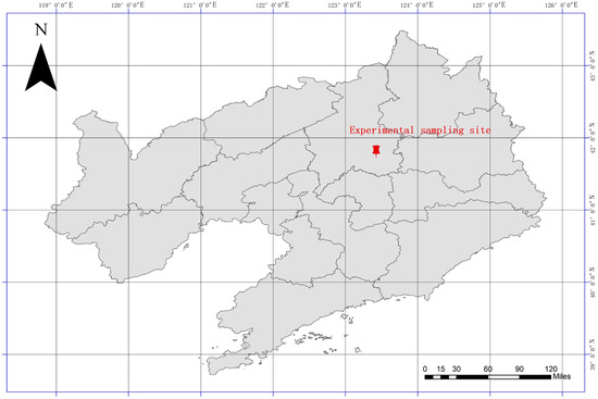 The tested soil samples were collected in the long-term positioning test station (41.82° N, 123.57° E) of brown earth in the Shenyang Agricultural University of Northeast China (Figure 1). This site was flat with an elevation of 75 m and a northern temperate monsoon climate, showing cold and dry winter conditions and concentrated high temperature and rainy summer conditions. The average annual temperature was 6.2–9.7 °C and the annual precipitation was 600–800 mm. The annual frost-free period was 155–180 days. Precipitation was concentrated in summer. The local soil type was classified as brown earth (Hapli-Udic Alfisol according to the U.S. soil taxonomy), which is developed from loess-like parent material, with no hydrochloric acid reaction in the whole profile. The crop was continuous corn (varieties commonly used locally). Sown around 25 April and harvested around 25 September each year. The basic physical and chemical characteristics of the soil in 1987 were as follows: an organic matter content of 15.6 g kg−1, a total nitrogen content of 1.0 g kg−1, a total phosphorus content of 0.5 g kg−1, a total potassium content of 21.56 g kg−1, an alkaline nitrogen content of 67.4 mg kg−1, an available phosphorus content of 8.4 mg kg−1, an available potassium content of 99.7 mg kg−1, a pH value of 6.39, a bulk density of 1.22 g cm−3. The tested site area is 9.6 m long, 7.2 m wide, and has an area of 69 m2, with three replications for each site of fertilizer application treatment.