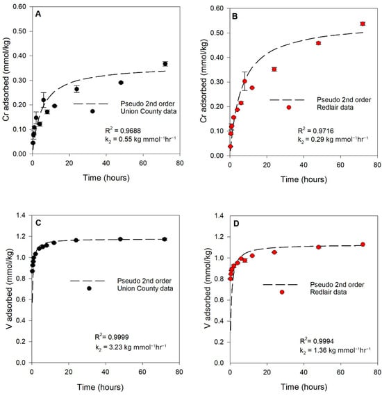 3.2. Kinetics of Chromium and Vanadium Sorption to Saprolite