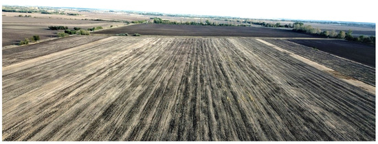 Within the broader category of soil tillage, stubble tillage occupies a unique position as an intermediate tillage practice conducted between the harvesting of one crop and the planting of another. Unlike primary tillage, which often involves deeper soil inversion (e.g., moldboard plowing in conventional tillage), or conservation tillage systems, which minimize soil disturbance, stubble tillage focuses on shallow residue incorporation to maintain good soil conditions during the summer and control weed growth. This method is particularly effective in dryland systems where preserving surface cover is essential for moisture retention and erosion prevention [6]. Stubble tillage involves the partial incorporation of crop residues into the soil without complete removal, which helps to manage soil surface conditions and retain moisture [7,8]. This practice plays a crucial role in preparing the soil for the next cropping season by maintaining soil structure, preventing soil compaction, and conserving soil moisture [9,10].