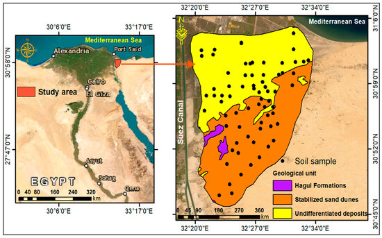 - Elbasiouny, H.; Elbehiry, F. Geology. In The Soils of Egypt; El-Ramady, H., Alshaal, T., Bakr, N., Elbana, T., Mohamed, E., Belal, A., Eds.; Springer Nature Switzerland AG: Cham, Switzerland, 2019; pp. 93–110. [Google Scholar]