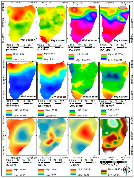 | pH | EC | Na+ | K+ | Ca2+ | Mg2+ | Cl− | SO42− | HCO3− | ESP | Sand | Silt | Clay | OM | CaCO3 | Cr | Co | Cu | Fe | Pb | Mn | Ni | |