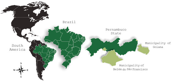 The soils used in this study were collected in the state of Pernambuco, in the municipalities of Goiana, located in the coastal region of the state, and Belém do São Francisco, in the semi-arid hinterland of Pernambuco (Figure 1).