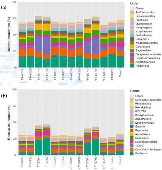 - Akob, D.M.; Mills, H.J.; Gihring, T.M.; Kerkhof, L.; Stucki, J.W.; Anastácio, A.S.; Chin, K.J.; Küsel, K.; Palumbo, A.V.; Watson, D.B.; et al. Functional Diversity and Electron Donor Dependence of Microbial Populations Capable of U(VI) Reduction in Radionuclide-Contaminated Subsurface Sediments. Appl. Environ. Microbiol. 2008, 74, 3159–3170. [Google Scholar] [CrossRef]