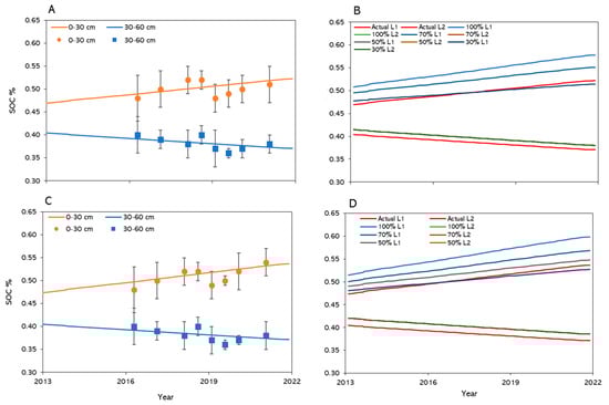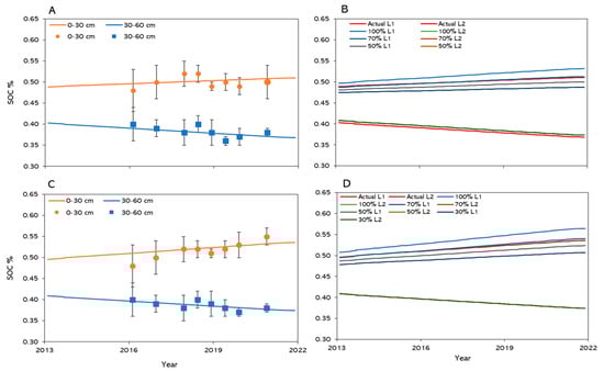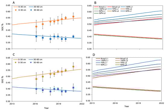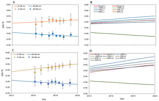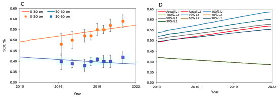 - Cavigelli, M.A.; Nash, P.R.; Gollany, H.T.; Rasmann, C.; Polumsky, R.W.; Le, A.N.; Conklin, A.E. Simulated Soil Organic Carbon Changes in Maryland Are Affected by Tillage, Climate Change, and Crop Yield. J. Environ. Qual. 2018, 47, 588–595. [Google Scholar] [CrossRef]