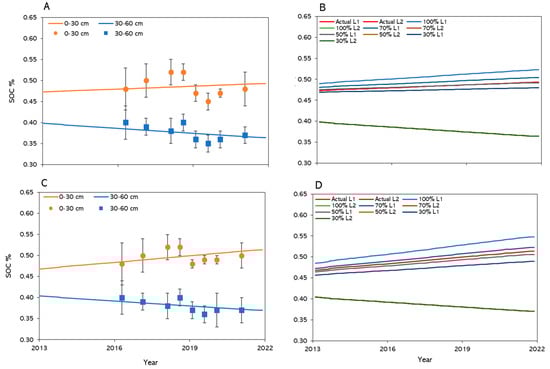 - Gollany, H.T.; Elnaggar, A.A. Simulating Soil Organic Carbon Changes across Toposequences under Dryland Agriculture Using CQESTR. Ecol. Modell. 2017, 355, 97–104. [Google Scholar] [CrossRef]