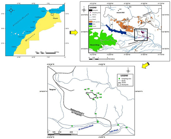 Geographic locations of the Targuist dumpsite (North Morocco) and sampling sites.
