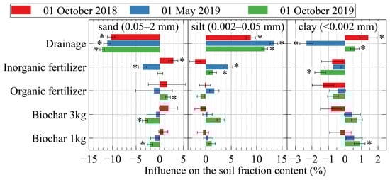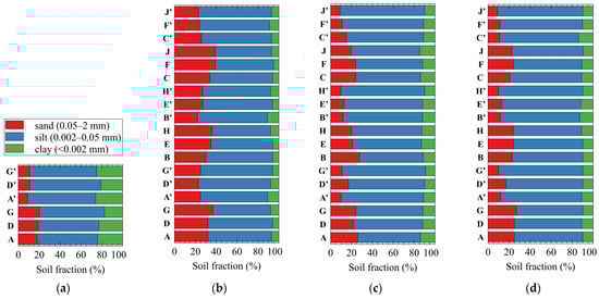 2), subsurface drainage systems, and fertilizer regimes on key physical properties of Endoargic Anthrosols (clay loam) in coastal Primorsky Krai, Russia. Granulometric composition remained stable (silt loam: sand 42–48%, silt 38–44%, clay 12–16%), though drainage significantly increased the silt fraction by >7.5% (