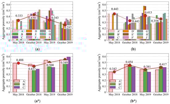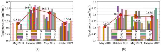 ρa; max −9.3%, 2018), but these effects dissipated by 2019 due to tillage redistribution and monsoonal fragmentation, as verified by SEM. Total porosity fluctuated seasonally (0.50–0.65 cm
