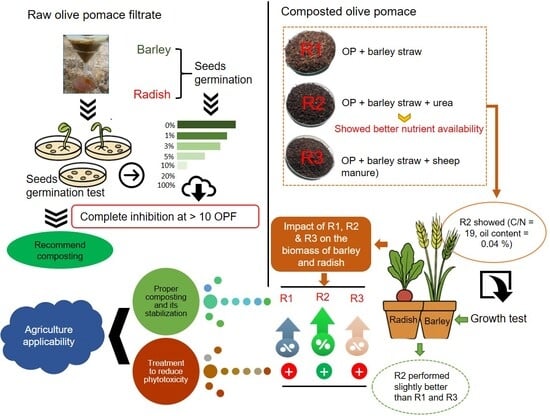 - Pinho, I.A.; Lopes, D.V.; Martins, R.C.; Quina, M.J. Phytotoxicity assessment of olive mill solid wastes and the influence of phenolic compounds. Chemosphere 2017, 185, 258–267. [Google Scholar] [CrossRef]