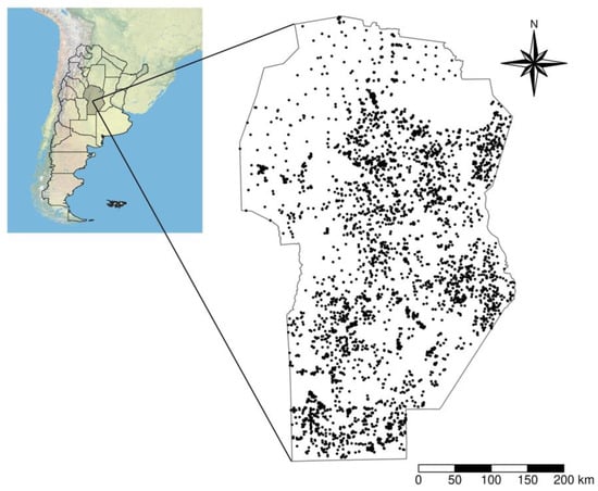 Figure 1. Study area in Argentina and distribution of sampling points (n = 7000) used for DSM.