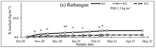 | K Concentration in Leachate (mg L−1) | K Leachate Load (kg ha−1) | |