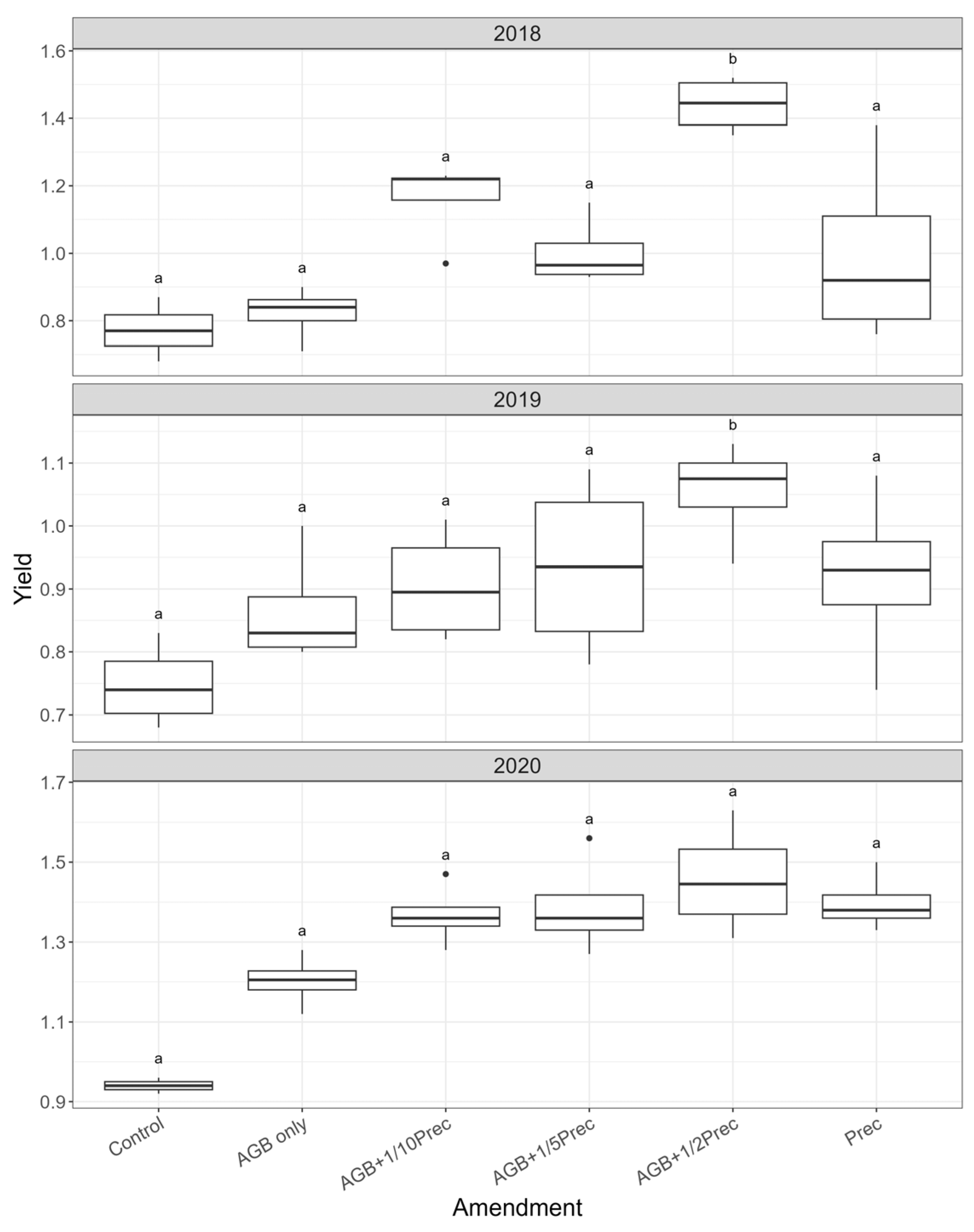 Year | Control | AGB Only | AGB+1/10Prec | AGB+1/5Prec | AGB+1/2Prec | Prec |