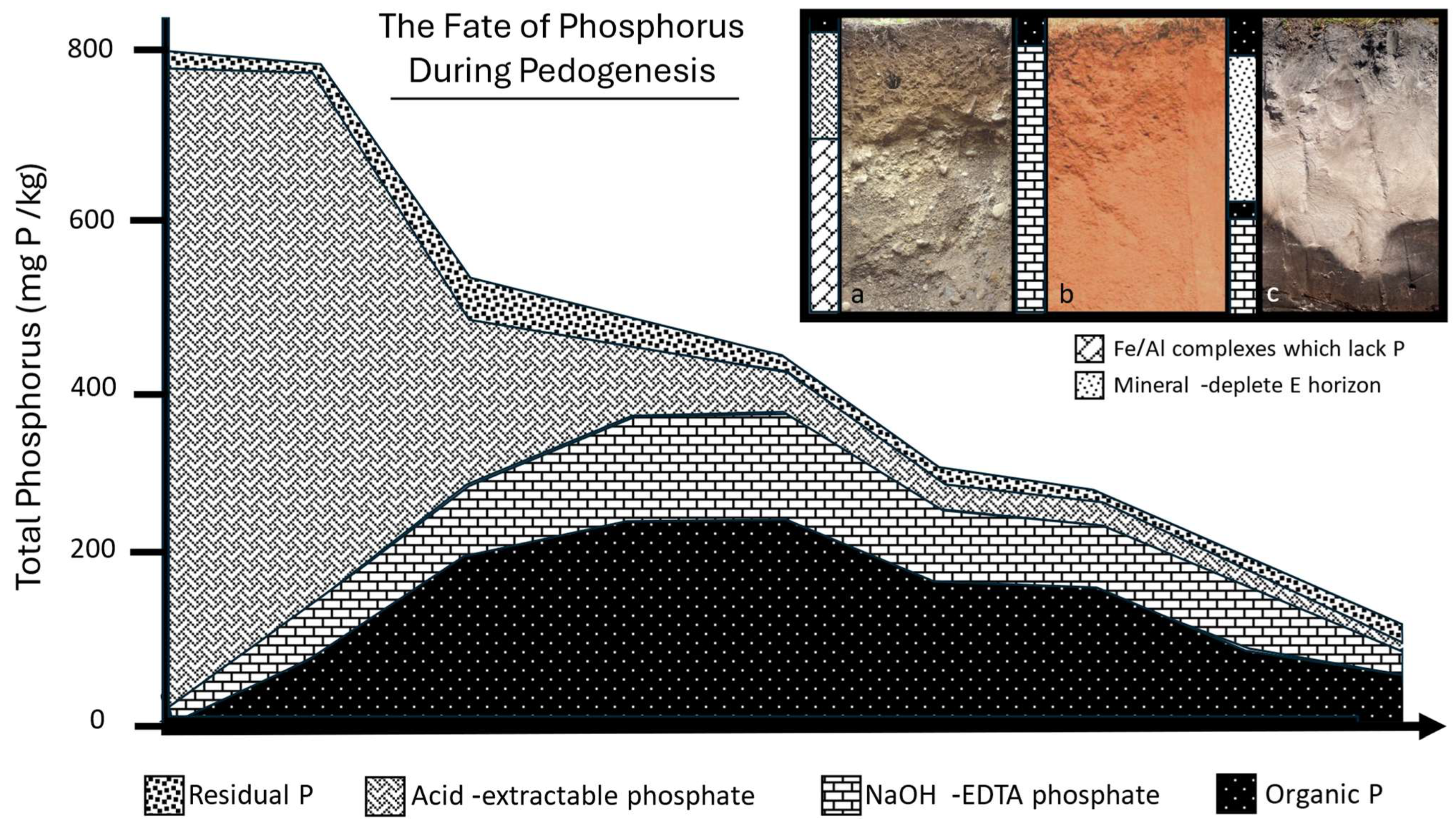 - Walker, T.W.; Syers, J.K. The fate of phosphorus during pedogenesis. Geoderma 1976, 15, 1–19. [Google Scholar] [CrossRef]