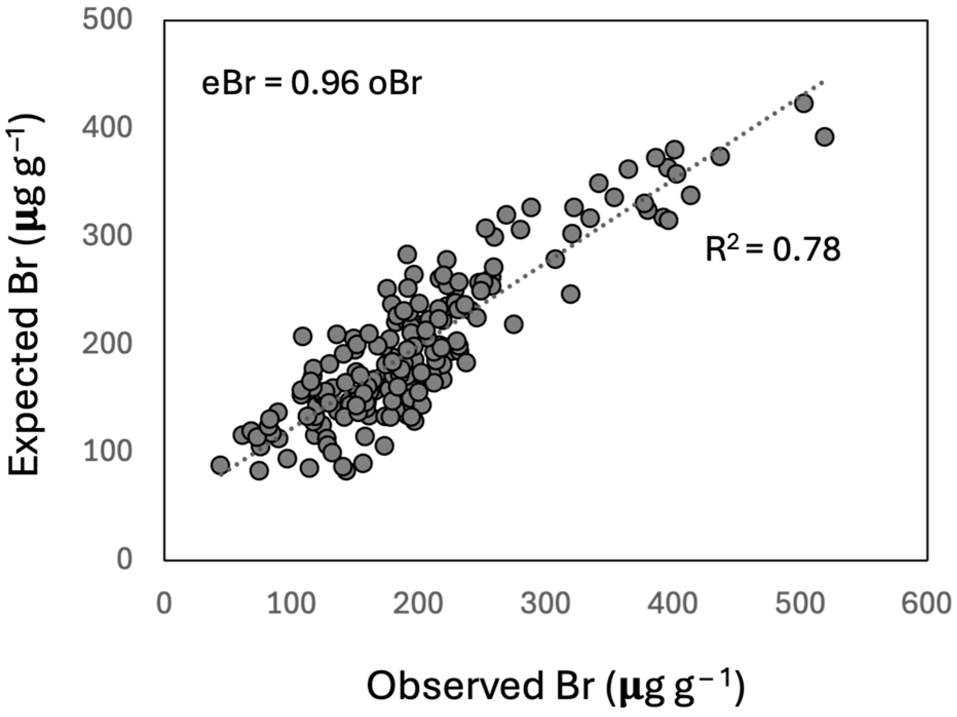 The following supporting information can be downloaded at: https://www.mdpi.com/article/10.3390/soilsystems9040120/s1, Data file, in Excel format, cotaining Br concentrations and normalised absorbances of selecet wavenumbers for all analysed samples.