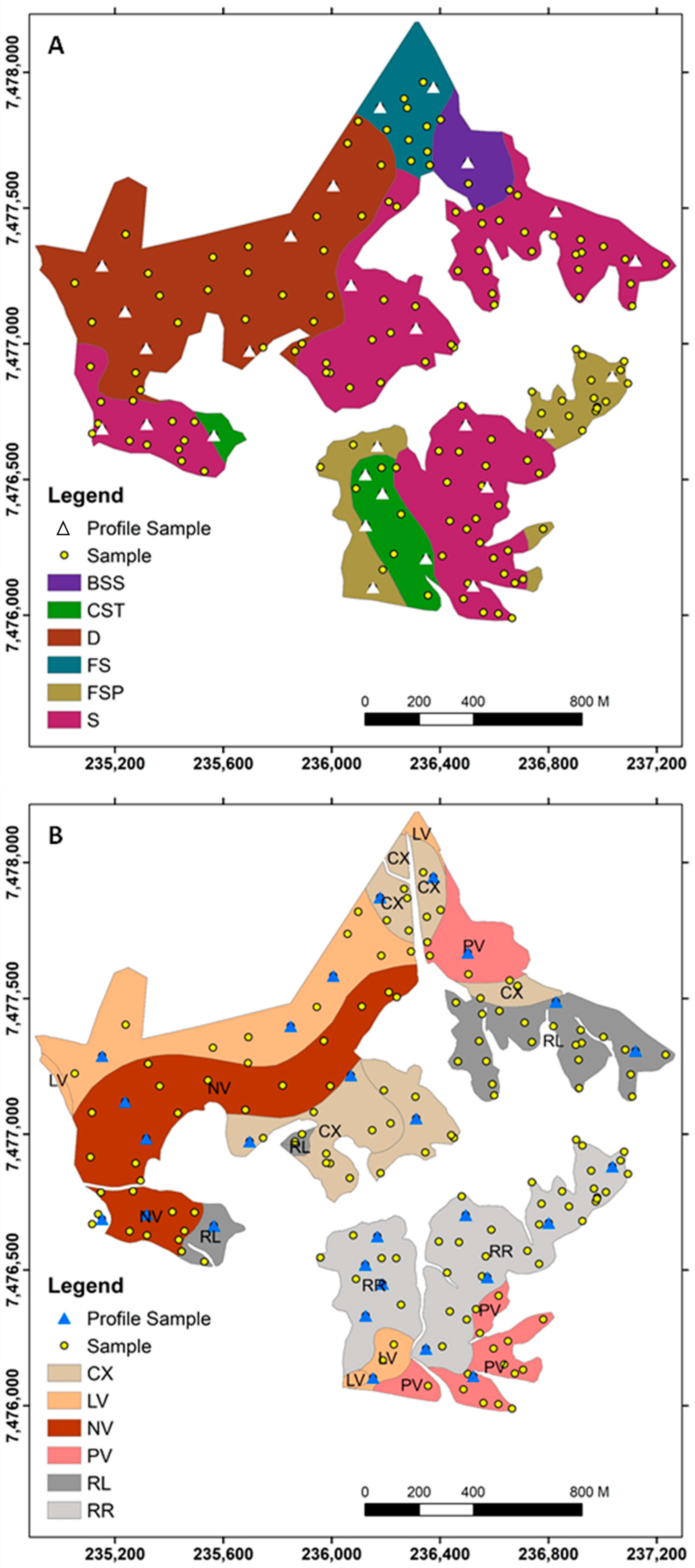 - The resulting geophysical-isoparameter maps showed strong correspondence with pedological and lithological units, with prediction errors mainly occurring in transitional zones between lithologies and on steep slopes, areas that are inherently complex for both conventional and digital soil mapping.