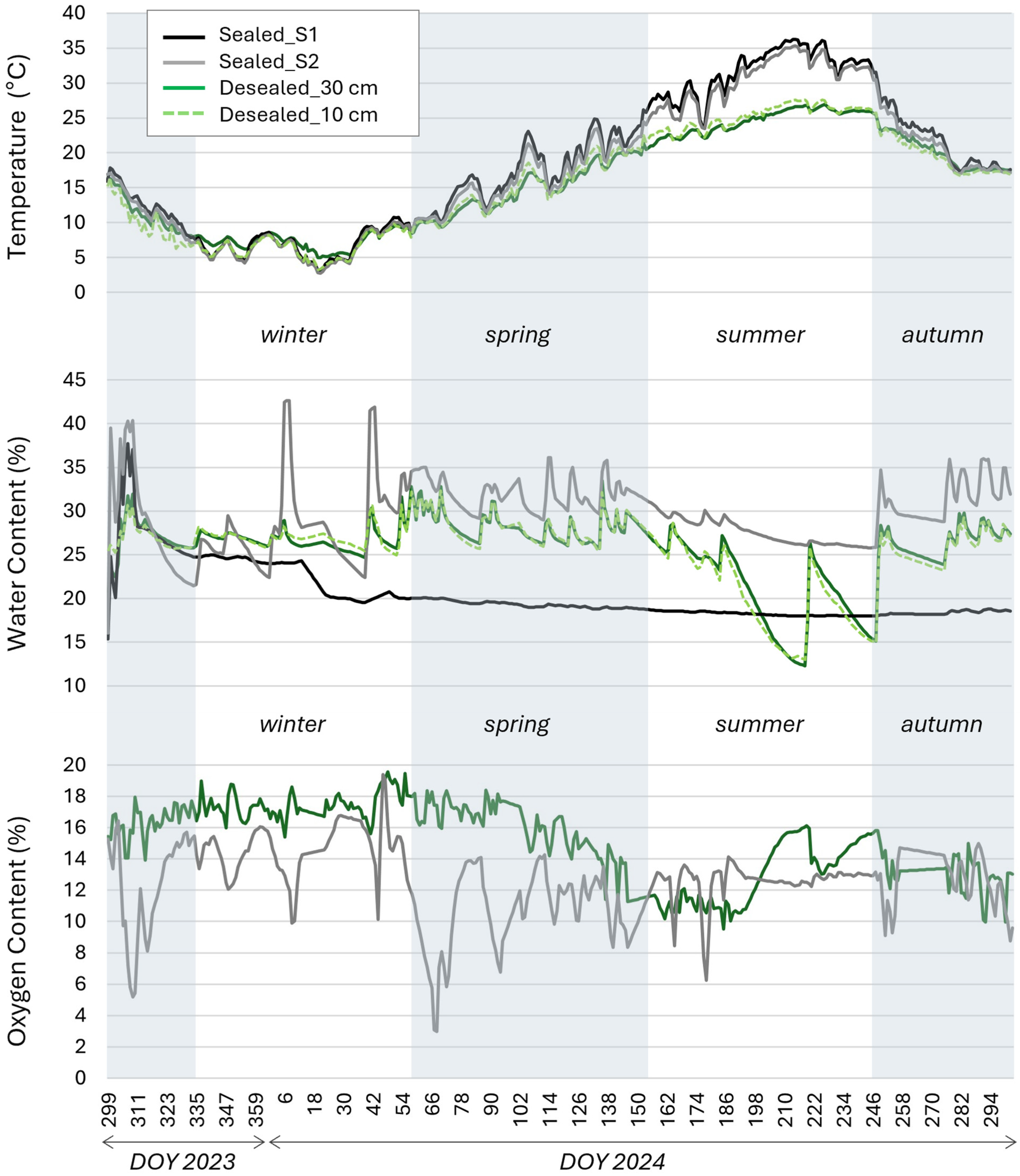 4.1. De-Sealing Effects on Pedoclimate Factors