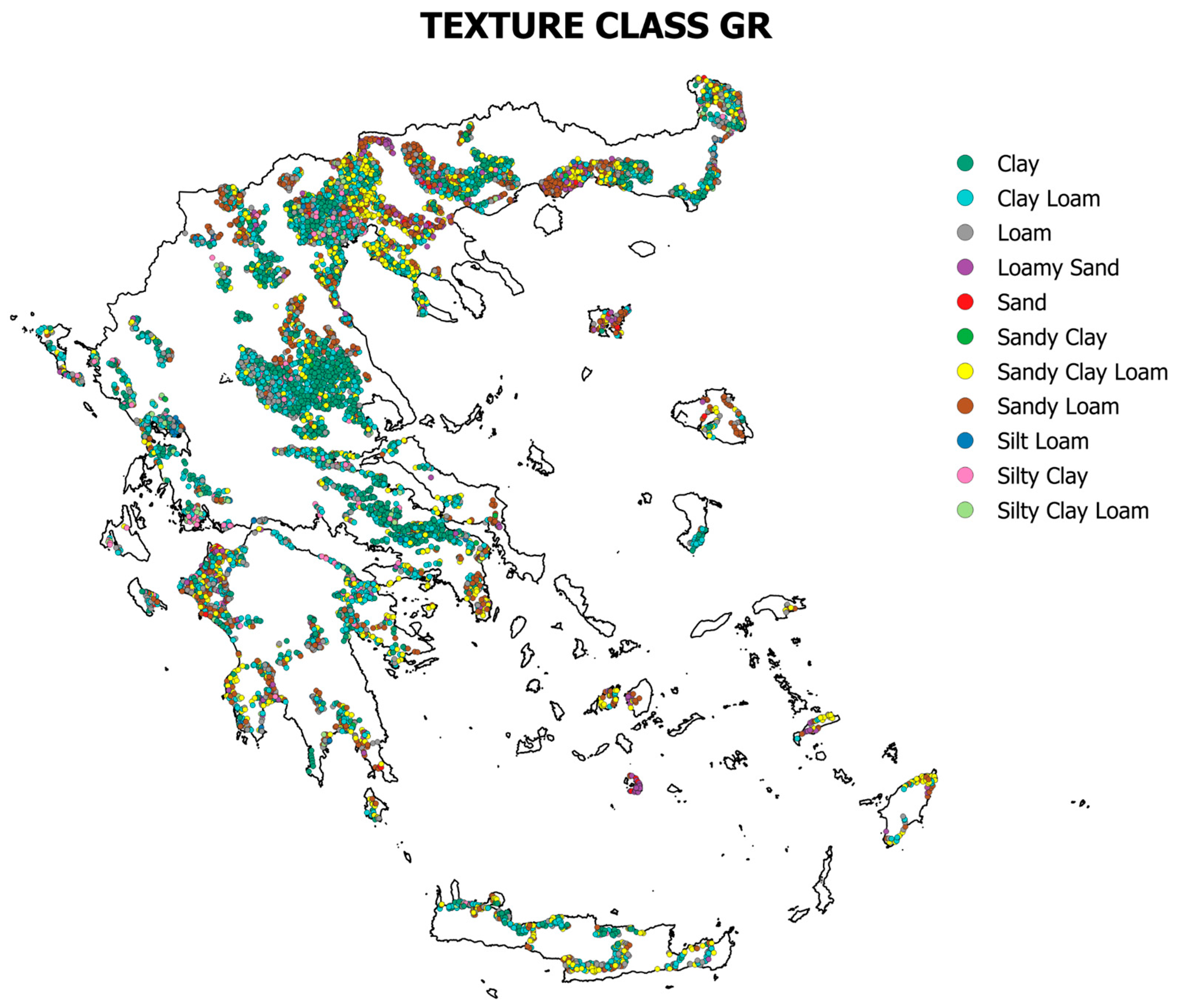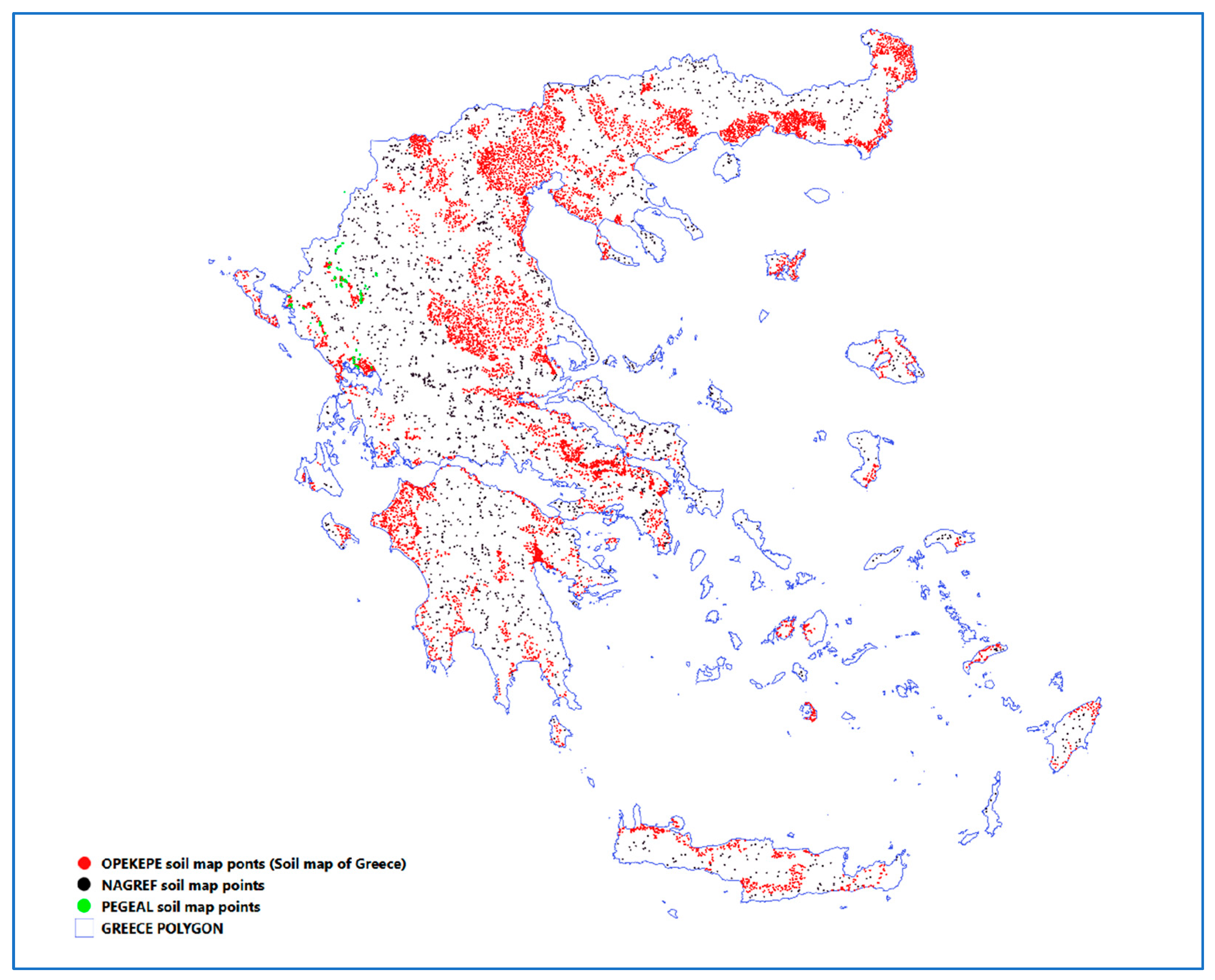 - OPEKEPE Greek Payment and Control Agency for Guidance and Guarantee Community Aid. Available online: https://www.opekepe.gr/opekepe-organisation-gr/opekepe-e-services-gr/pliroforiaka-systimata/gewpliroforiako-systima-edafologikwn-dedomenwn (accessed on 10 August 2025).